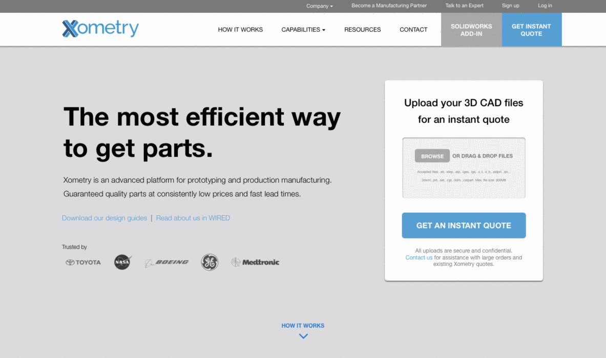 This project is typical of a large number of content- or marketing-focused website projects that I have designed. I am often responsible for designing the organization and layout for websites whose primary purpose is to communicate a mix of informational and persuasive content about a client or product. In most cases, this means creating wireframes that define the arrangement of and navigation between content components. In the case of Xometry, these wireframes were then assembled into a working prototype so that they could be shared with representative users to test for usability and comprehension.